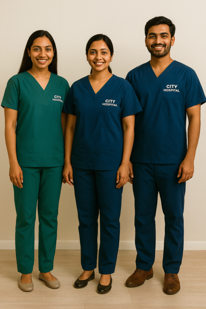 Hospital uniforms are designed to provide comfort, hygiene, and professionalism for healthcare staff while maintaining a consistent and trusted appearance. Our affordable hospital uniforms are made from high-quality, durable, and breathable fabrics that ensure ease of movement during long shifts. We offer custom hospital uniforms tailored to your hospital’s branding, including color, style, and logo options. With easy-care and functional hospital uniforms, doctors, nurses, and medical staff can work efficiently while presenting a clean, professional image.